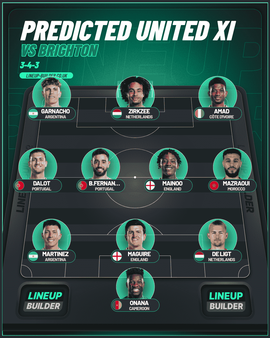 Harry Maguire is also likely to return in defence in place of Leny Yoro, who looked shaky on Thursday. Matthijs de Ligt and Lisandro Martinez will most likely accompany him in the back three.