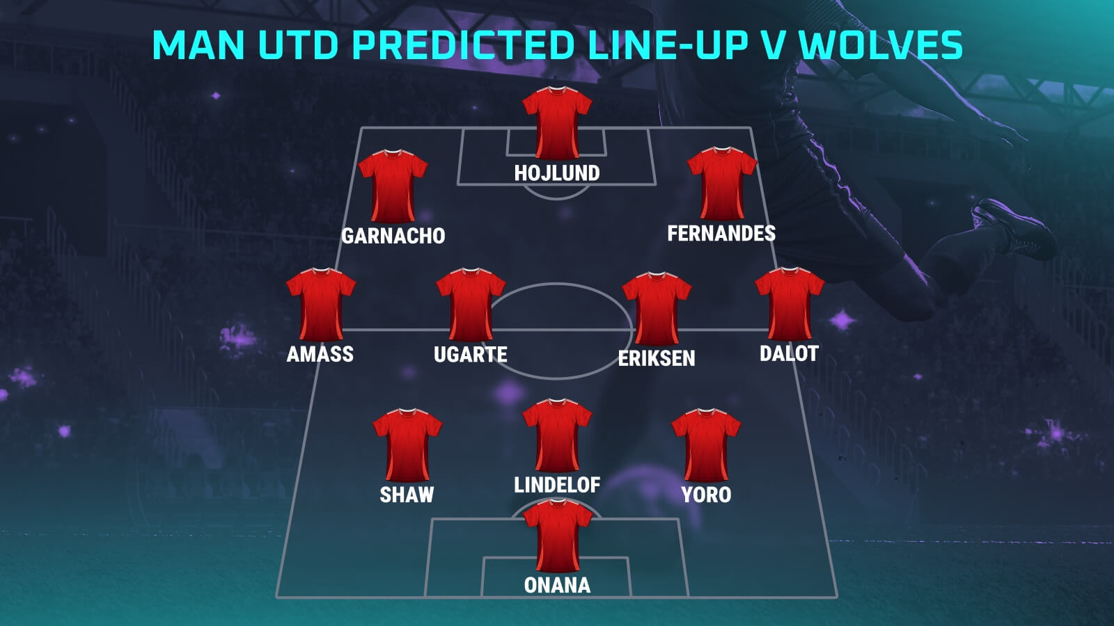Onana – Yoro, Lindelof, Shaw – Dalot, Eriksen, Ugarte, Amass – Fernandes, Garnarcho – Hojlund