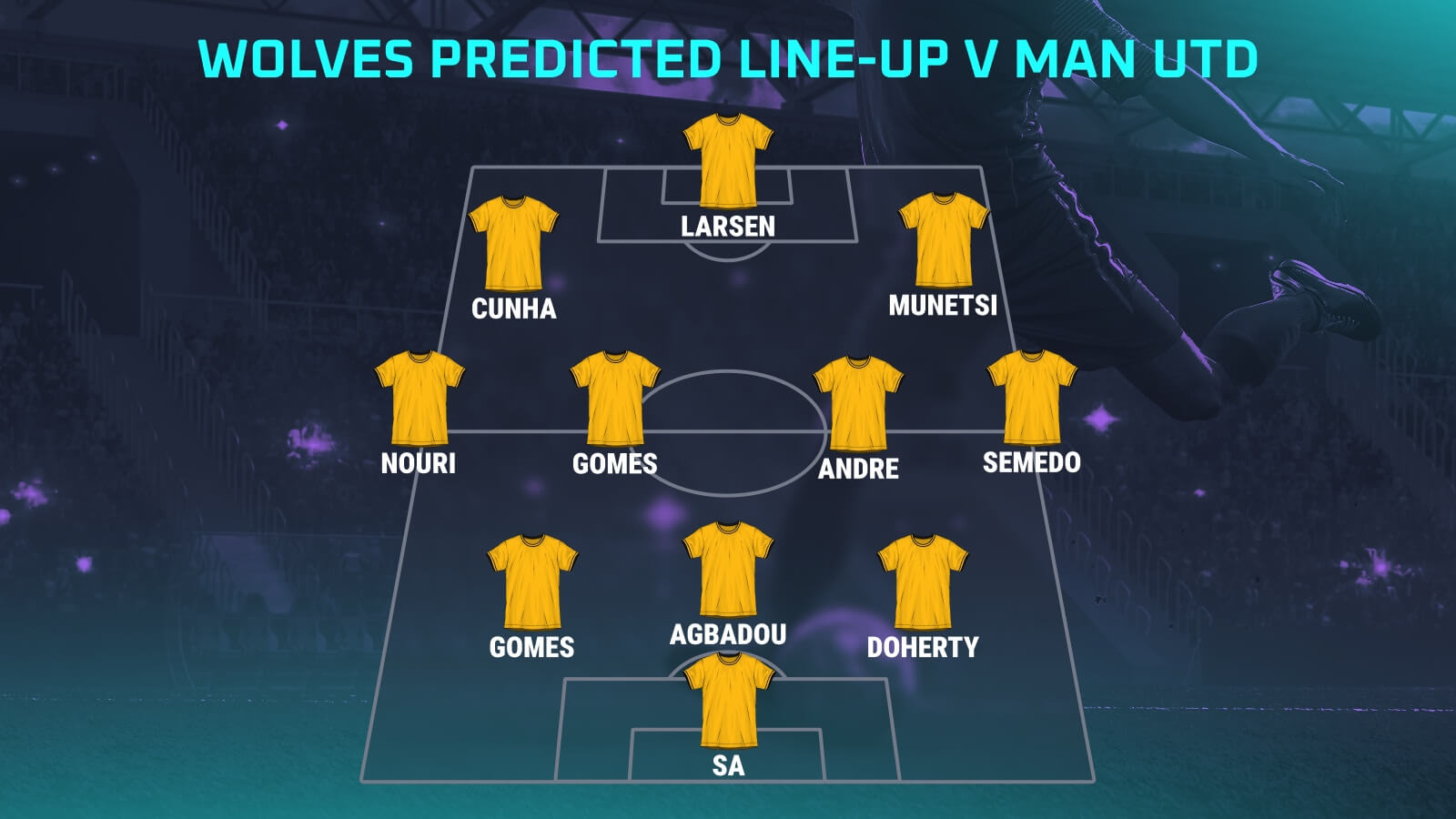Sa – Doherty, Agbadou, Gomes – Semedo, Andre, Gomes, Nouri – Munetsi, Cunha – Larsen