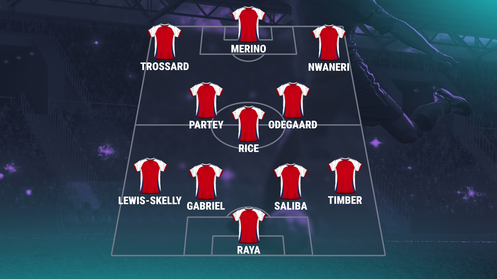 Thomas Partey, Martin Odegaard and Declan Rice should start in midfield, but Jorginho is an option.