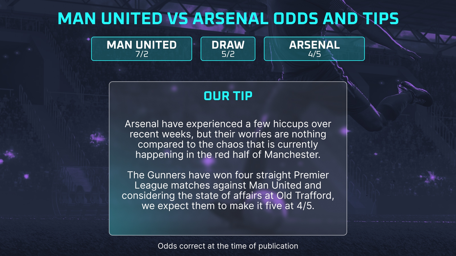 Arteta’s side have enjoyed two extra days of rest and should be solid enough to withstand isolated attacks. We think they’ll dominate, win, and shut United out.