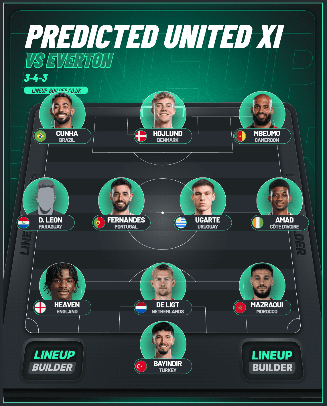 Amorim said Matheus Cunha would be back for this game having missed the Bournemouth victory due to fatigue. So he is likely to play on the left side of the attack with Mbeumo on the right.