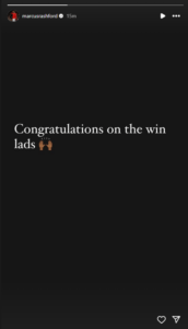 The Carrington academy graduate wrote on his Instagram stories, “Congratulations on the win lads.”