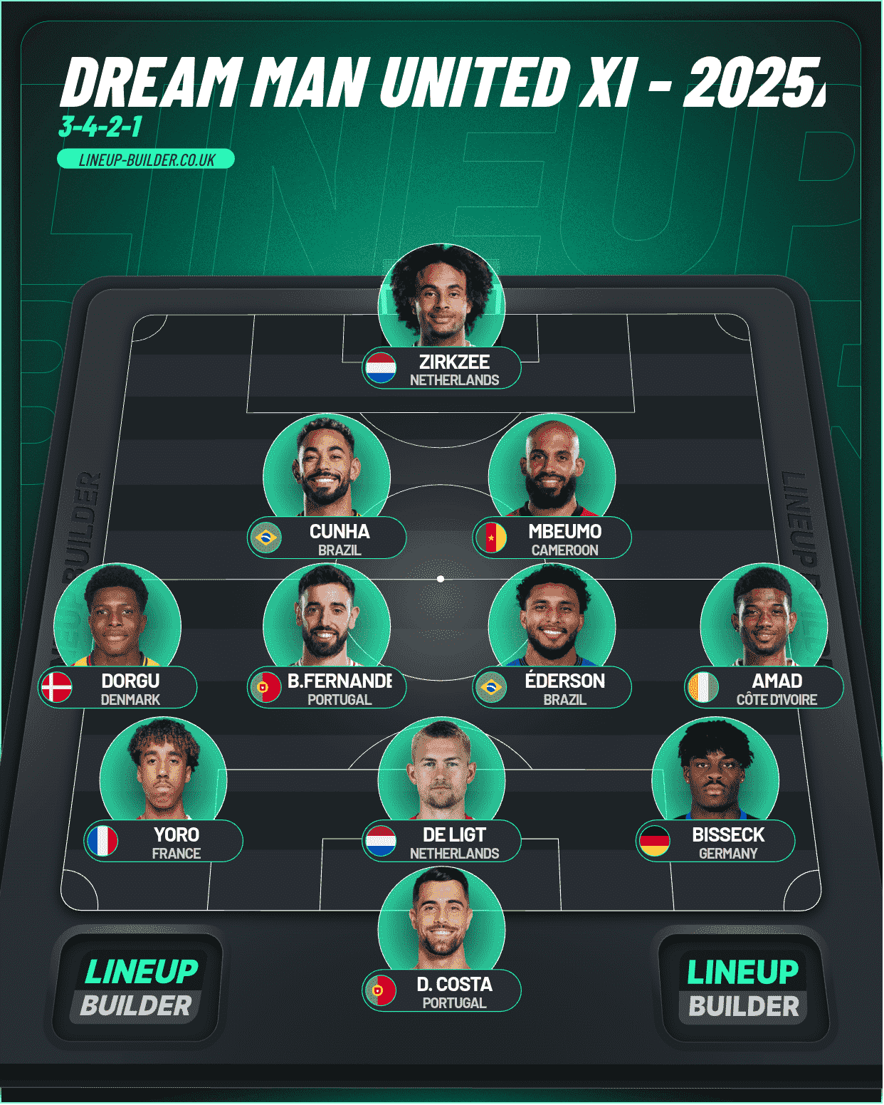 Channelling the striker funds to a goalkeeper, midfielder, and defender signing would strengthen the spine of Amorim’s system for a strong starting XI that looks like this: