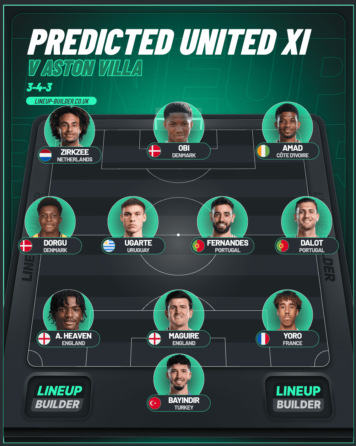 Ayden Heaven and Leny Yoro are likely to start and represent beacons of hope for next season. Harry Maguire could be the third centre back if Matthijs de Ligt has not recovered from injury.