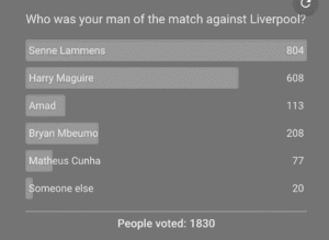 Finally, 2% believed that another United player was deserving of being named the player of the match.