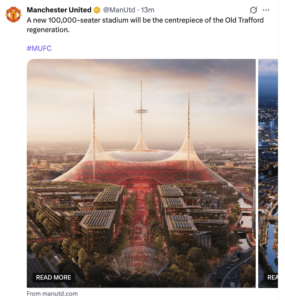 “Sources say a similar deal for their new stadium could be worth more than double that figure, with the club likely to receive offers in excess of £50million a year.”